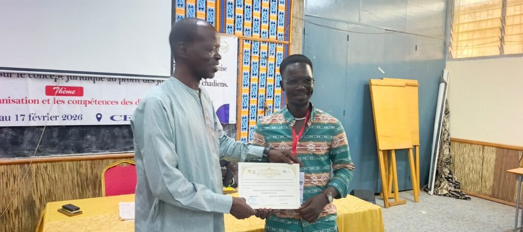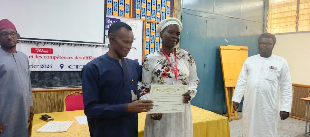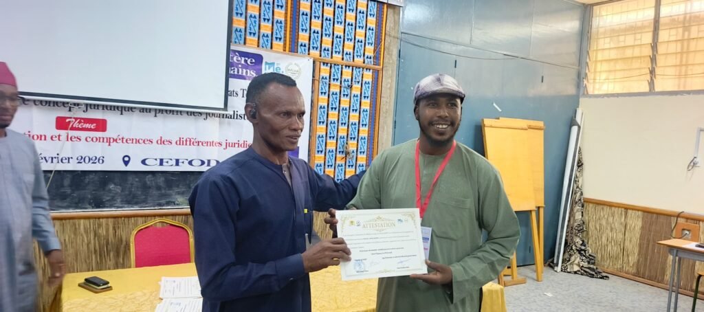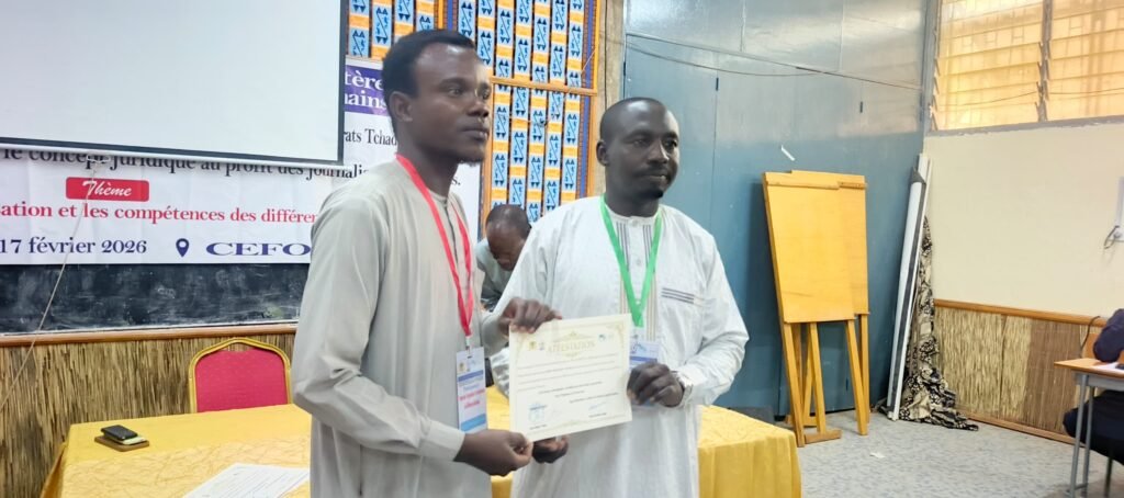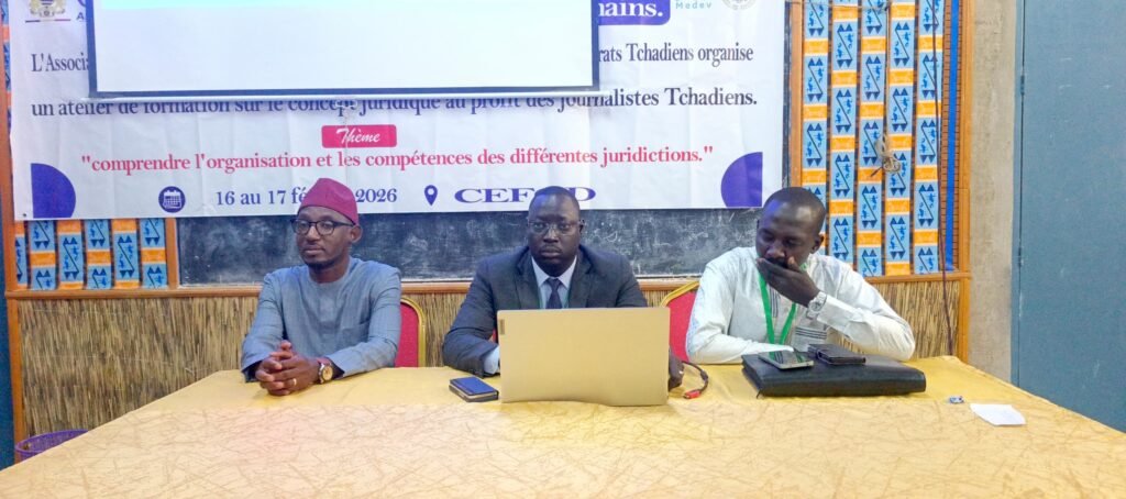 N’Djamena, 17 février 2026 – L’atelier de formation sur les concepts juridiques à l’intention des journalistes tchadiens s’est achevé ce mardi à N’Djamena, au Centre d’Études et de Formation pour le Développement (CEFOD). Organisée par l’Association des Médias en Ligne du Tchad (AMET), avec le parrainage du ministère de la Justice, de la Haute Autorité des Médias et de l’Audiovisuel (HAMA) et de l’ONG MEDEV, cette session visait à renforcer les capacités des professionnels des médias dans le traitement de l’information judiciaire.