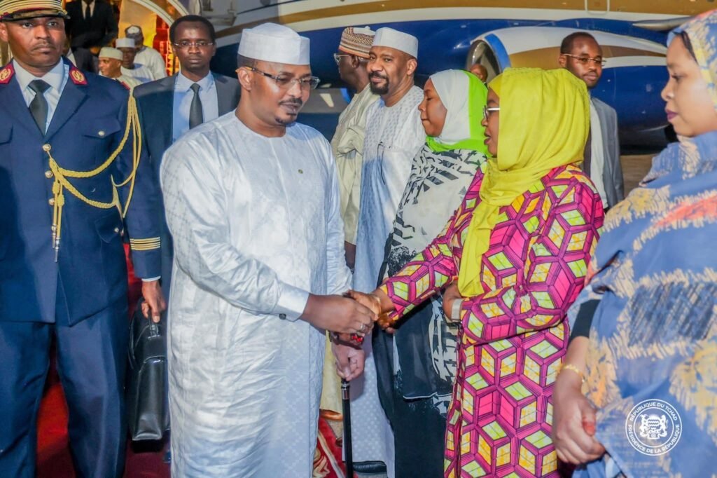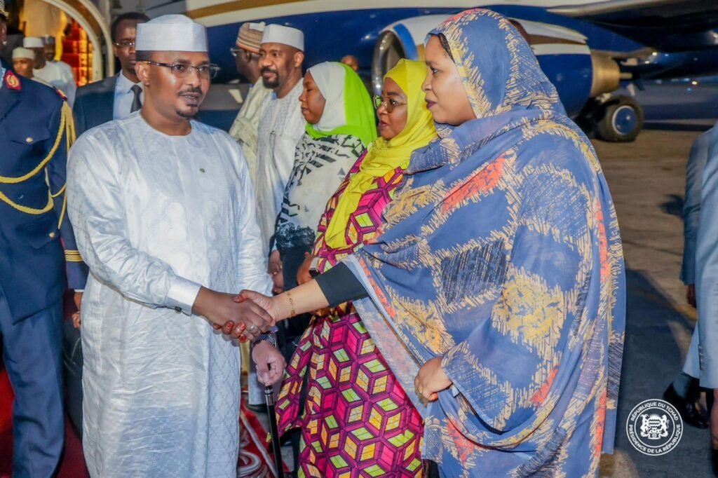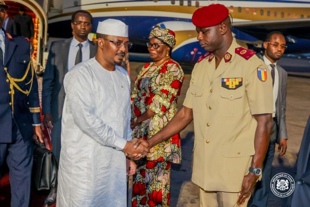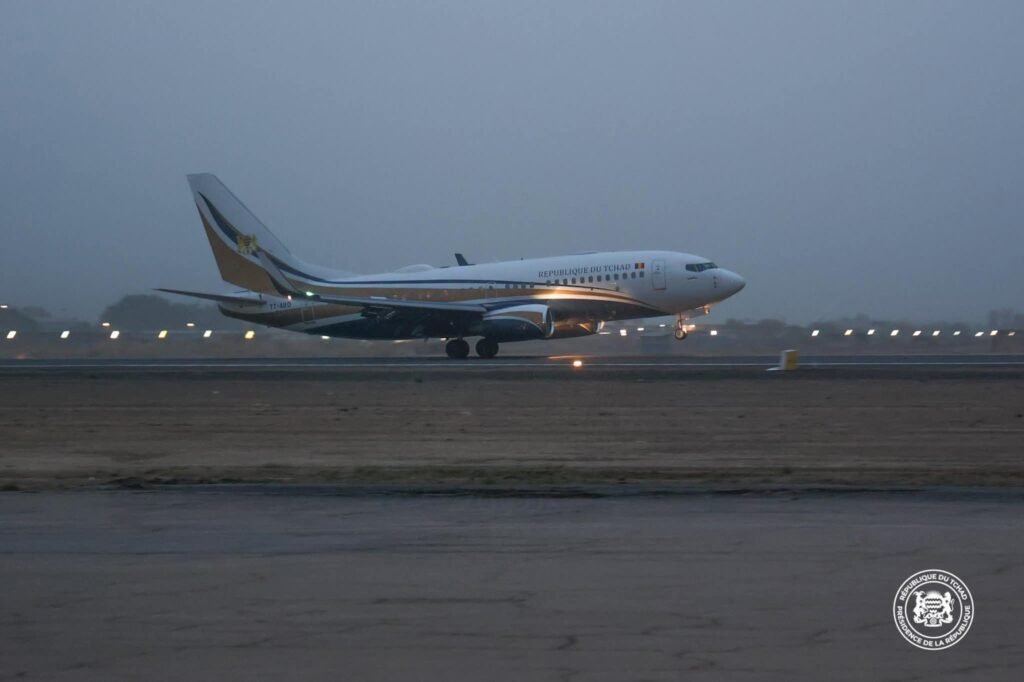 À son arrivée à l’aéroport international Hassan Djamous de N’Djaména, il a été accueilli par le Premier Ministre, Ambassadeur Allah-Maye Halina, entouré de plusieurs membres du gouvernement, du Chef d’État-Major Général des Armées, ainsi que des autorités municipales de la capitale.
