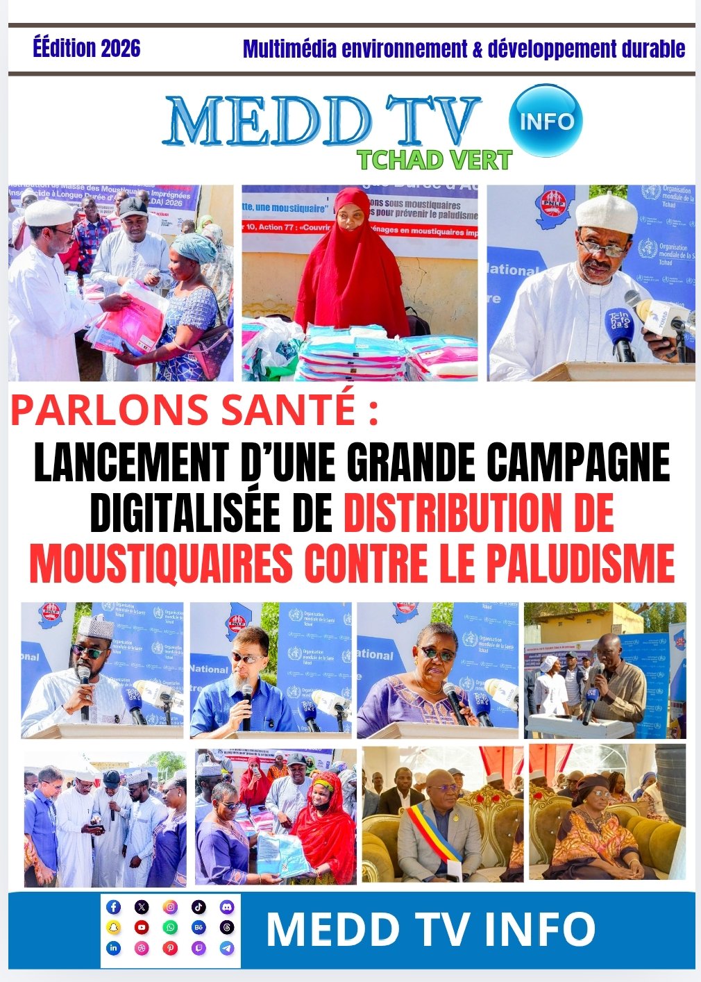 Le ministre de la Santé publique et de la Prévention, Dr Abdelmadjid Abderahim, a officiellement lancé, ce samedi 07 mars 2026 au centre de santé d’Atrone à N’Djamena, la campagne de distribution de masse digitalisée des moustiquaires imprégnées d’insecticide à longue durée d’action (MILDA). Cette initiative nationale vise à renforcer la lutte contre le paludisme, première cause de morbidité et de mortalité dans les formations sanitaires au Tchad.
